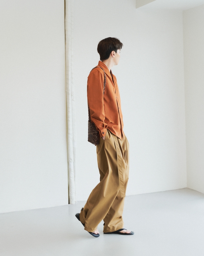 Wide-leg design with a curved silhouette. A harmonious blend of distinctive details and a structured, upright look.