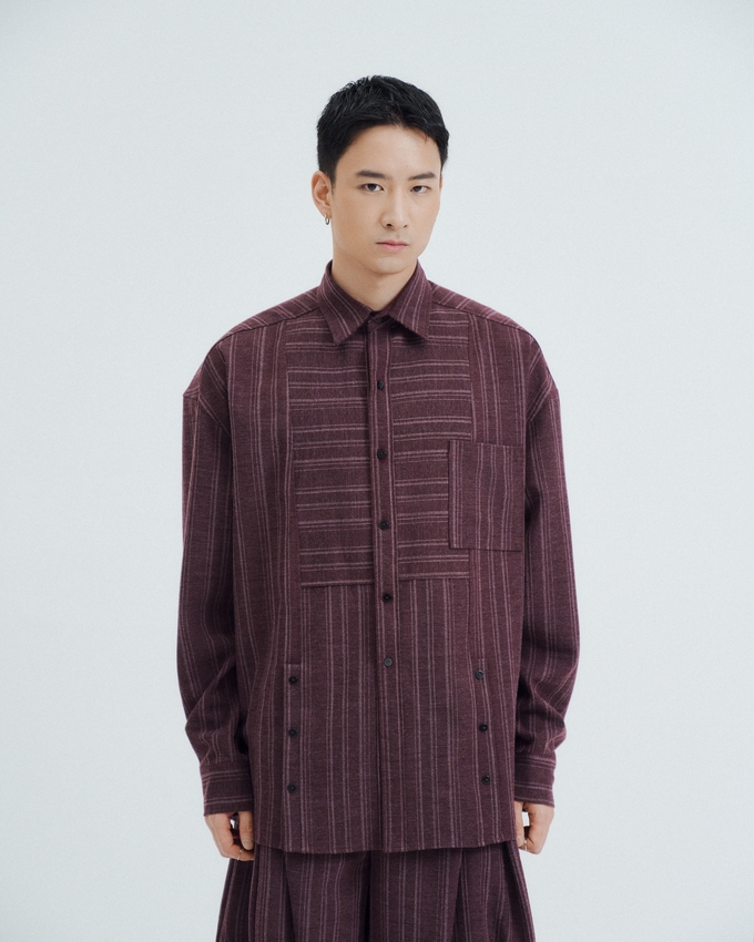 A relaxed, structured piece defined by refined stripe composition and subtle architectural detailing.