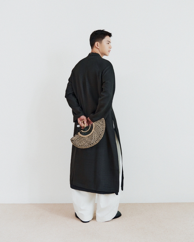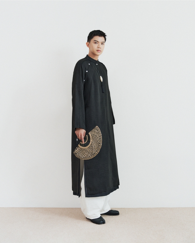 A timeless áo dài distilled into a modern silhouette, rendered in a pure black that conveys understated elegance.