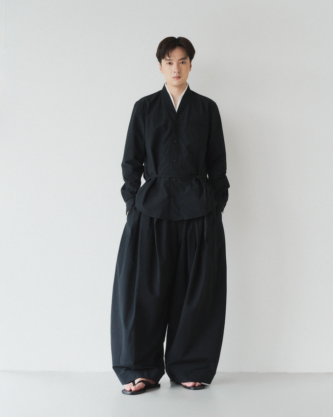 The silhouette is defined by natural fullness, elevated by sculpted pleats that bring sophistication to everyday wear.