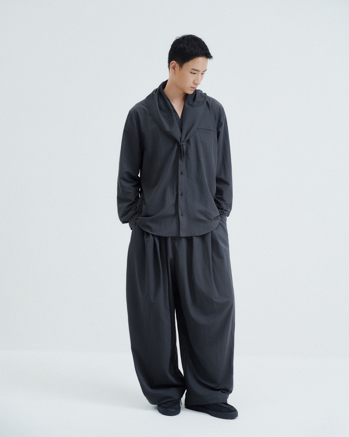 Belt loop along the placket, adaptable for styling with a scarf or accessory