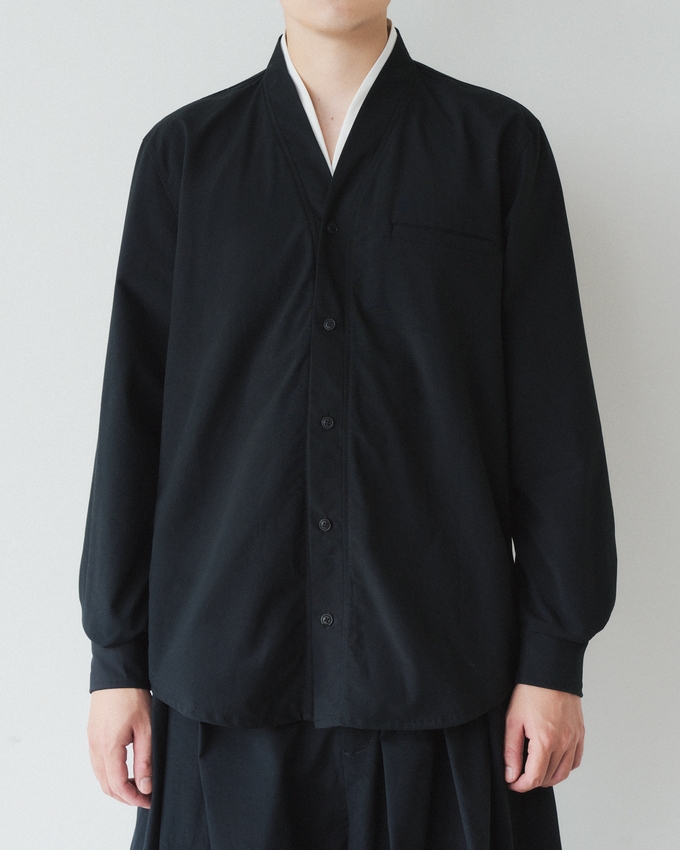 Inner collarLoose-fitting, V-neckButton closure at the frontCuffed sleeves with button closure